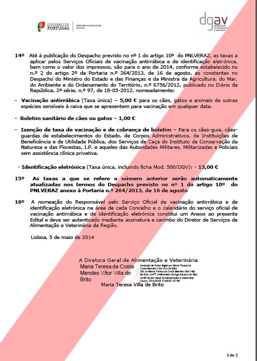 Calendário da campanha de vacinação antirrábica e de identificação eletrónica 2014 (28/05 > 26/06)
